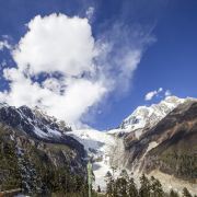 贡嘎山是中国冰川最为发达的山峰之一。数以百条的冰川,面积达三百平方公里,其中,海螺沟冰川长30公里,面积220平方公里,海拔3500米,是世界罕见的低海拔冰川。贡嘎山地貌复杂,生物气候带垂直分布清晰,动植物生长良好。