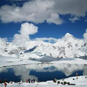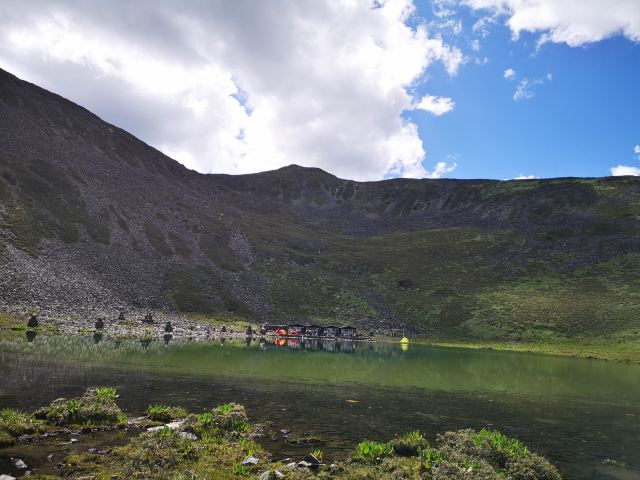 冷嘎措位于贡嘎雪山玉龙西村前十公里左侧一个海拨约4530米的高山上,是一个典型的冰斗型海子,缺口正对贡嘎主峰。因这里距离蜀山之巅贡嘎雪山非常近,所以成为户外徒步爱好者和摄影爱好者拍摄、观看贡嘎雪山倒影的好地方。