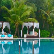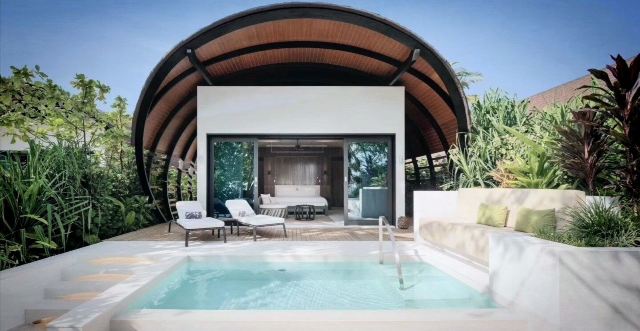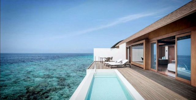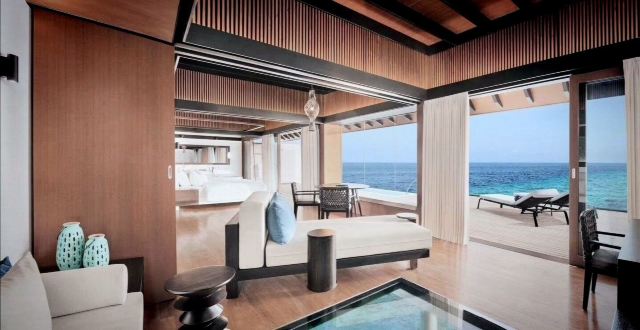 房间面积大、沙屋带泳池、水屋玻璃地板、观赏到180度海景的落地窗