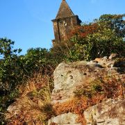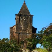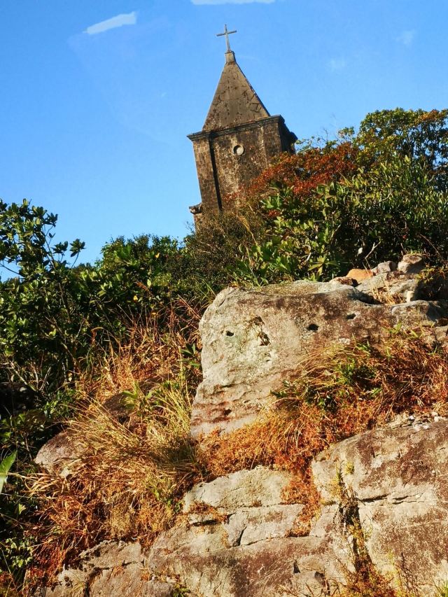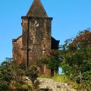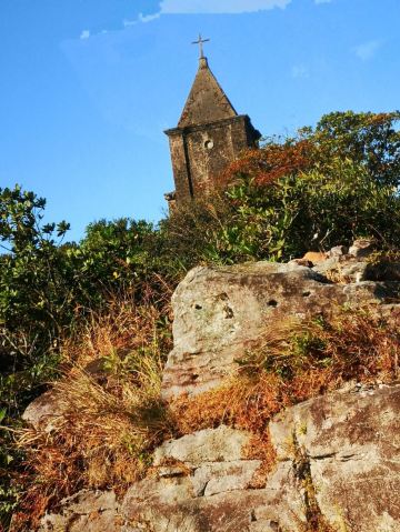 | 这是一座历史悠久的天主教堂,被绿色植物所包围,坐落在贡布省的一个山顶上,里面有一些雕像,看起来十分独特。 |