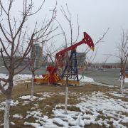 当您坐火车来达克拉玛依的时候,您会在路上看到这个“磕头机”,它是抽油机,抽油机是开采石油的一种机器设备。