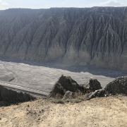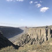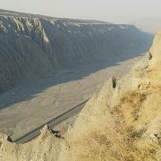 景点真的不错,它其实是由天山上的水冲刷而成,由于天气水分又蒸发掉不见,看起来就象现在这样,一个深深的峡谷,就象刻在地面上的刀疤。颜色有灰、黑、黄,少许红色,有一点丹霞地貌的特征。人在站在边上就对比很鲜明,因为那个峡谷是真心的大。然后一般都会有很大的风,吹得人都有站不稳的感觉,要看多大的风,看围巾的飘动就知道了。站在边上拍个照也是需要一定勇气的。