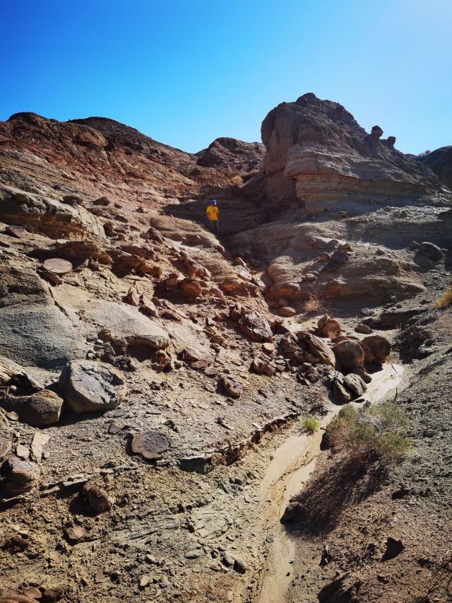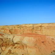 河谷两岸壁上是白垩系浅褐红色泥岩和砂岩。大峡谷陡峭的谷壁巍然挺立、鬼斧神工,令人心旷神怡。