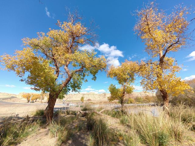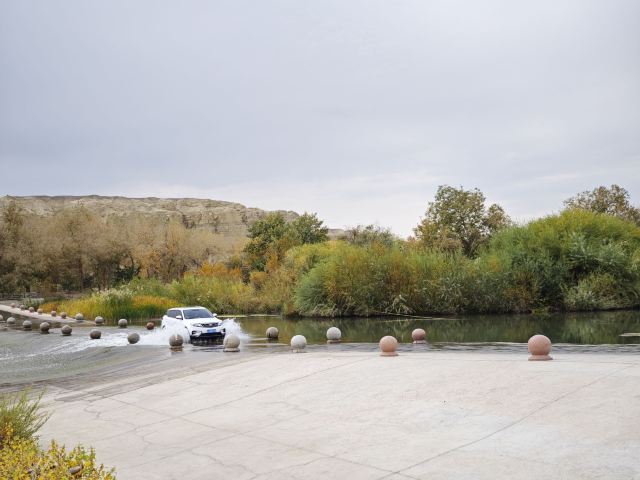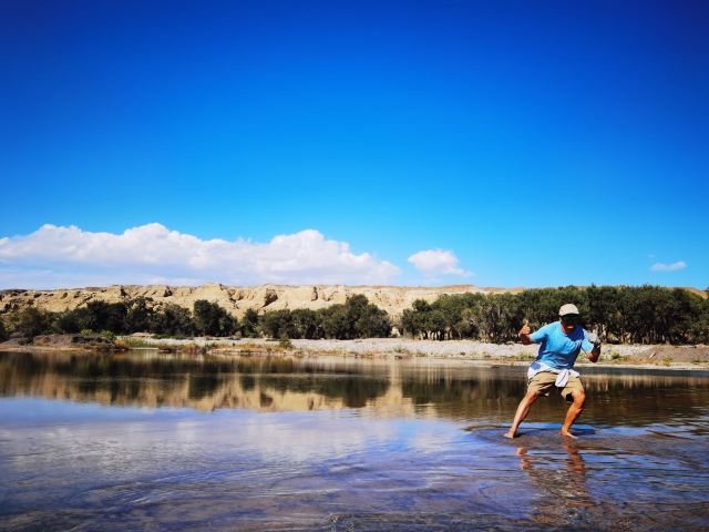 白杨河大峡谷是典型的雅丹地貌和峡谷风光景区,河水多曲流沿谷地蜿蜒而下。景区共有八处过水路面,自驾线路长约12公里,可以体验现代交通与自然融合的浑然之趣,水流两侧植被丰富覆盖度达60%,胡杨占乔木类的90%以上。