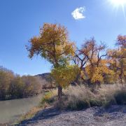 白杨河发源于新疆西部的乌尔喀什尔山,自西向东曲折蜿蜒近170公里汇入艾里克湖。白杨河沿岸景致纷呈,既有大漠绵延,又有山岩耸峙,集荒漠、山地雄奇风光与碧水蓝天于一体,而从白杨河水库至克拉玛依乌尔禾区24公里的白杨河大峡谷,河谷地林木茂密,河水蜿蜒,风景优美,夏季气温明显低于周围地域更是成为克拉玛依观光、漂流、避暑的好去处。