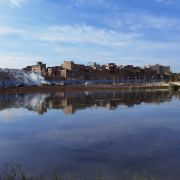 从颇具现代化的喀什新城隔河相望,老城的地势明显高出一截。高崖两千年前就已存在,一千多年前有维吾尔先民在此建房安家。相传东汉名将班超、耿恭曾在此留下足迹。公元九世纪中期喀什拉汗王朝时,就把王宫建在这个高崖的北面。