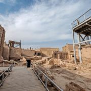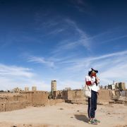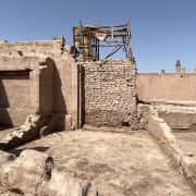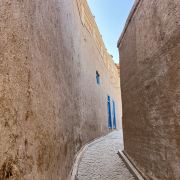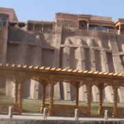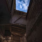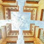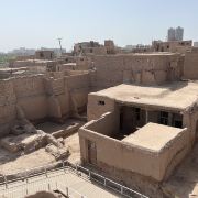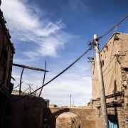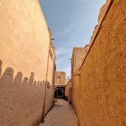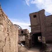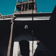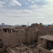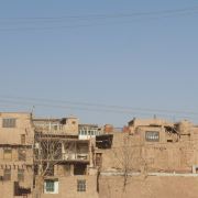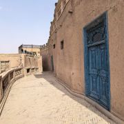高台民居位于喀什老城的边上,与东湖公园打照面,边上站着摩天轮,在冷风中一个劲的唏嘘。远远望去,近千年的民居显得苍老而破败,风吹日晒的痕迹随处可见,断井颓垣般的墙壁参差不齐,真真的是“良辰美景奈何天,赏心悦事谁家院”,仿佛你面对的是一个600多岁的老人,蜗居在冬日的暖阳下,斜躺着,睥睨相机镜头反射的光束。由于在进行维修维护和改造,现在是进不去的,站在周围拍了几张照片,土砖堆起来的房屋,像吹弹可破似的在冷风中茕茕孑立,毫不令人肃然起敬,断没有一点的违和感。