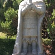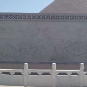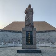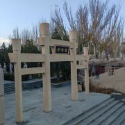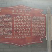 如今在原古城遗址上修建了盘橐城,占地14.5亩,以班超雕像为中心,36位勇士雕像沿神道左右对称,建有36米长,9米高的大型半圆浮雕屏墙,大门、古亭、石牌坊、城墙、烽火台等建筑。