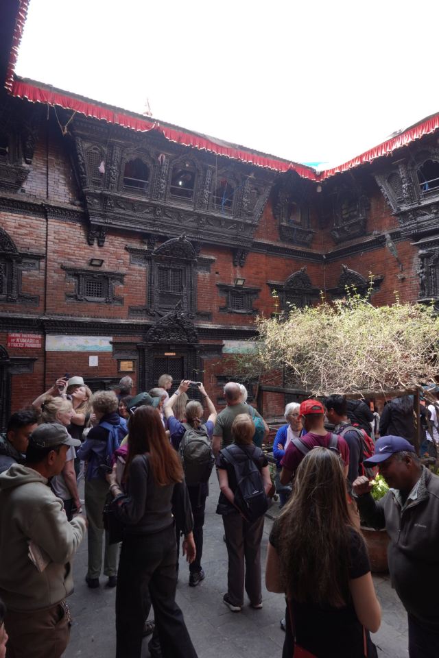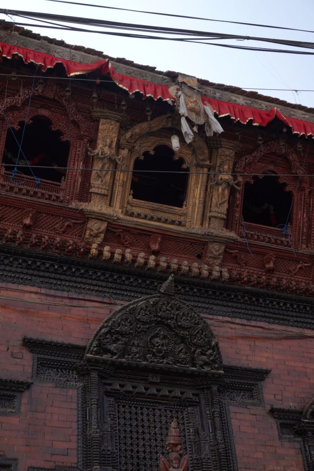 3分 不错这里面就是尼泊尔特色的活女神居住的地方,他就居住在这个楼上。据说有些时候到了他就会站在窗户上面接受人们的朝拜,可惜我们没有等到他出现。