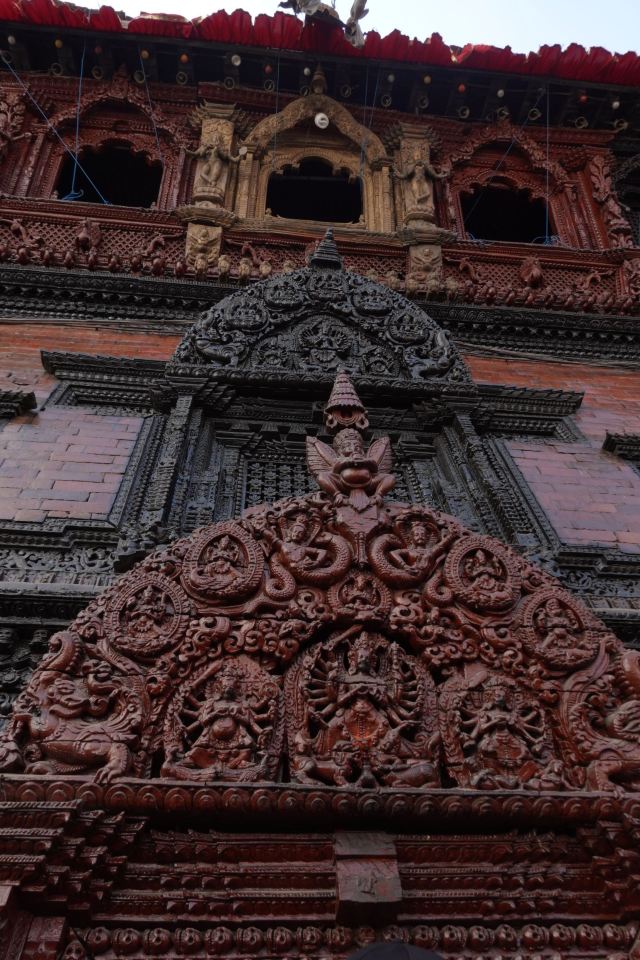 2、库玛丽女神庙(Kumari Bahal):也称活童庙,庙内供奉着活女神-马拉王朝的守护神库玛丽女神,又称童女神,是在几名4-7岁、没有流过血生过病、无胎记、牙齿整齐等特点的释迦族女童前制造惨像、恐怖场景等,其中面无惧色、无忧无喜的女童便会成为新一任活女神加以供奉,待到她月经初潮后再更换,但迎娶成年后的女神被认为会有厄运,库玛丽在印度语中意为处女。童女不能拍照,她不在庙内时可进庙参观拍照。
