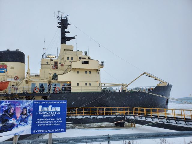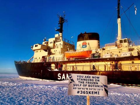 三宝号破冰船是一艘载客破冰两用船,于1960年建成下水,排水量只有3540吨。这样的吨位在现代破冰船中根本排不上号,但它的能力非凡,能破碎8米厚的冰层。每年冬季12月到来年4月,芬兰西面的波的尼亚湾北部的冰层厚达数尺,这个时候游客便可登上破冰船出海观光。从Ajos码头出发,整个观光过程近4个小时。