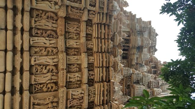 这些寺庙分属于婆罗门教和耆那教,但风格相同,在高高的基座上建起装饰繁缛的主建筑,与开有天窗的长廊相接。主建筑表面覆以彩绘镶板,顶部有集束型带曲线的尖塔,其中较高的几座位于圣殿正上方。