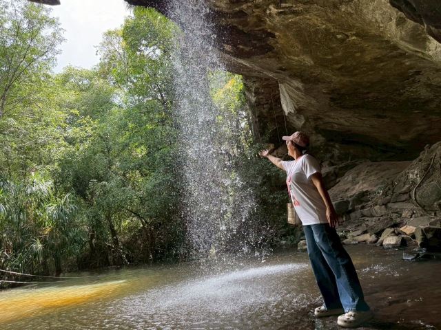 Sang Chan Waterfall是孔詹附近的一个景点,是一个美丽的瀑布,被誉为孔詹较美的瀑布之一。这个瀑布由几个不同高度的阶梯组成,水流湍急,水势汹涌,落差较大,非常壮观。瀑布周围的环境非常幽静,有茂密的森林和清澈的溪流,是一个非常适合徒步旅行和观光的地方。此外,Sang Chan Waterfall还是一个非常受欢迎的游泳和野餐地点,游客可以在这里尽情享受大自然的美景和清凉的水流。