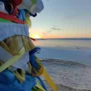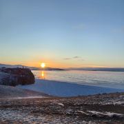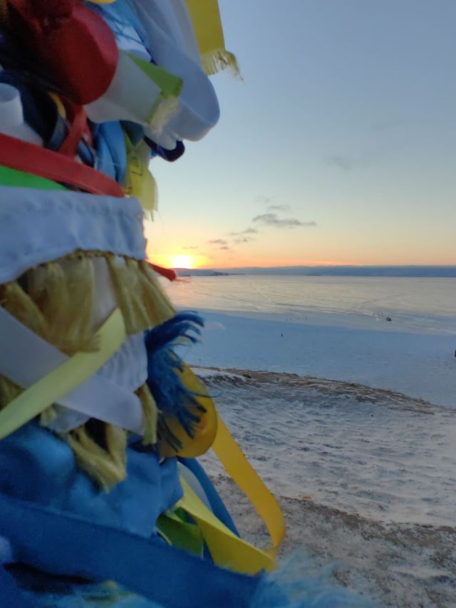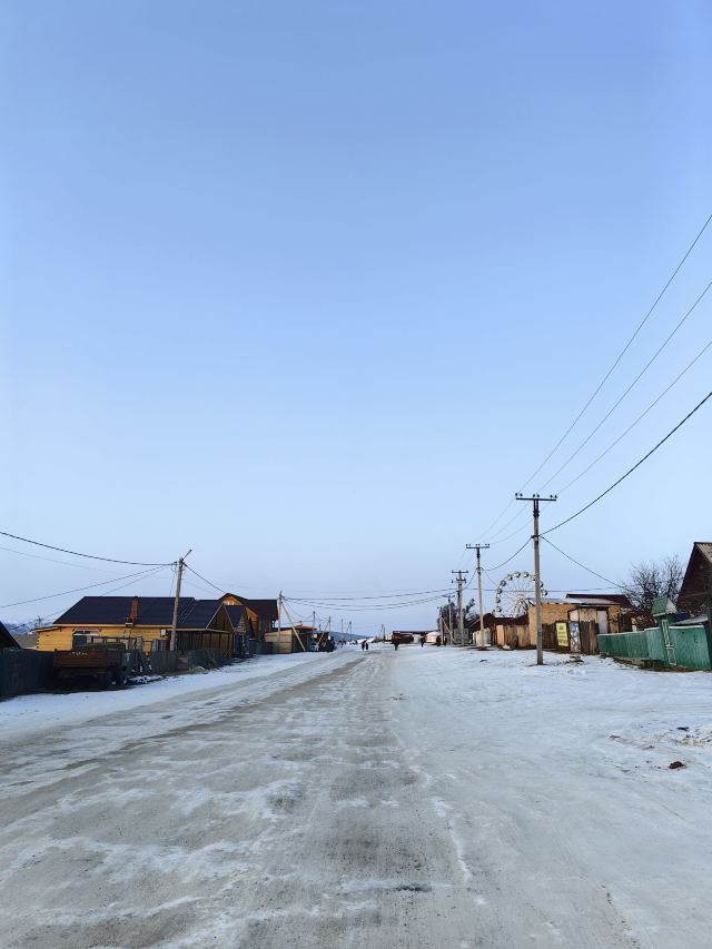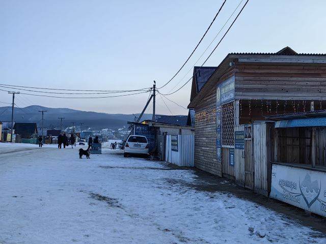 村子里较值得看的就是俄式乡村风情,随便闲逛即可。沿着村里的主道走到尽头,就可以看到码头了,这里就是贝加尔湖的岸边了,运气好的话可以看到满载而归的渔船,还可以看到一座白墙蓝顶的东正教小教堂,非常漂亮。萨满岩石在村子的东北角,在码头的北部,看日出日落都非常美。夏天的岸边可以晒晒太阳,看当地人在湖里游泳,冬天湖面结冰,码头到萨满岩石一路都是蓝冰,非常壮观。