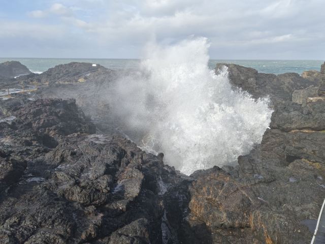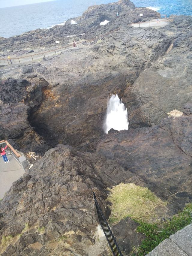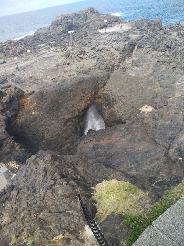 5分 超棒非常推荐大家去的一个地方,来到这里,就会发现大自然的鬼斧神工,都说水滴穿石,在这里,我第一次才真正理解这句话,这里是海浪穿岩,海水把厚厚的岩石,经过不知多久的岁月,岩石已被穿透。海浪拍击上来的浪柱,行程喷泉的感觉,既有爆发力,又有壮观感,幸运时,还能在每一次海浪冲击上来后,看到彩虹,行程一道独特的风景。