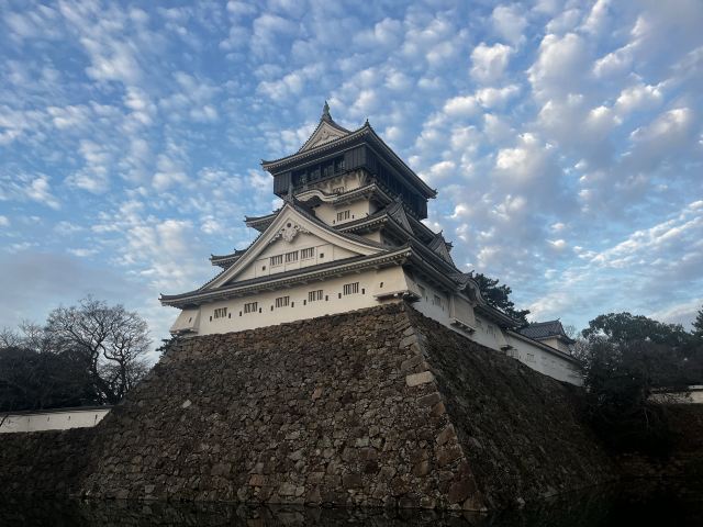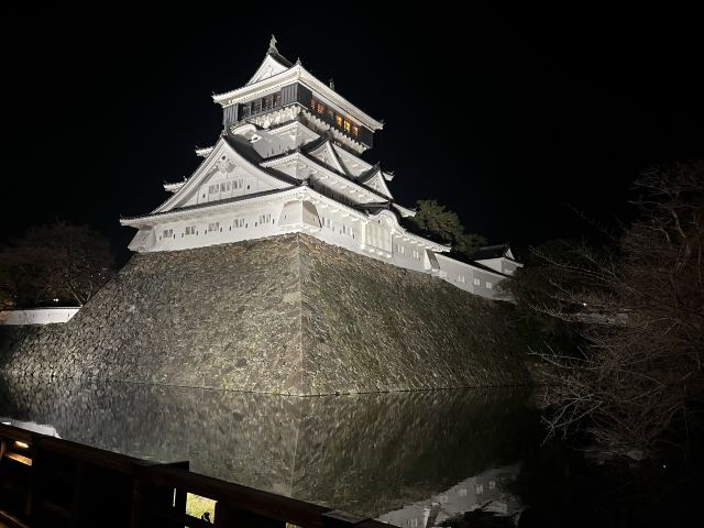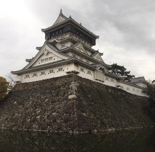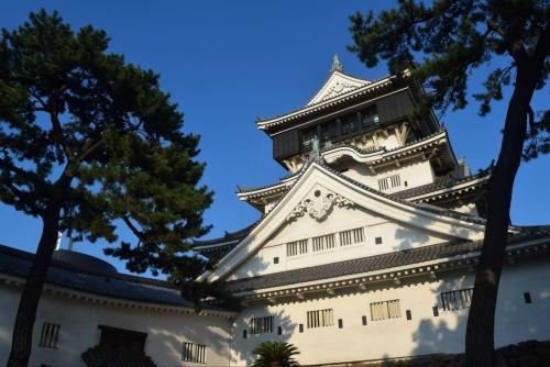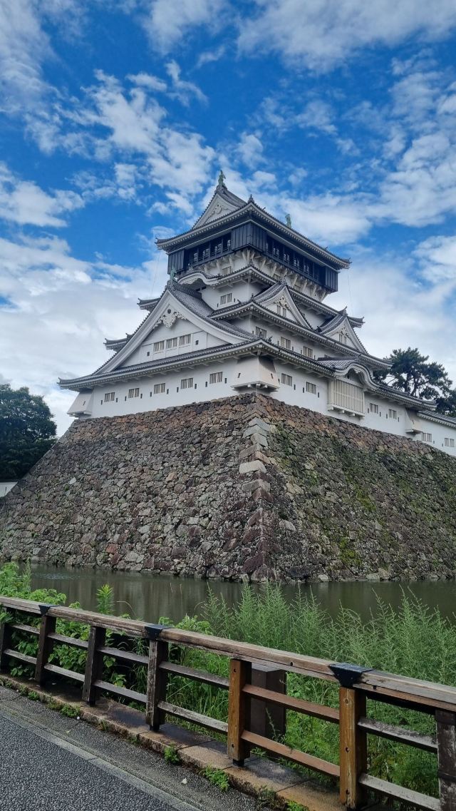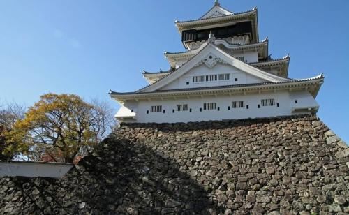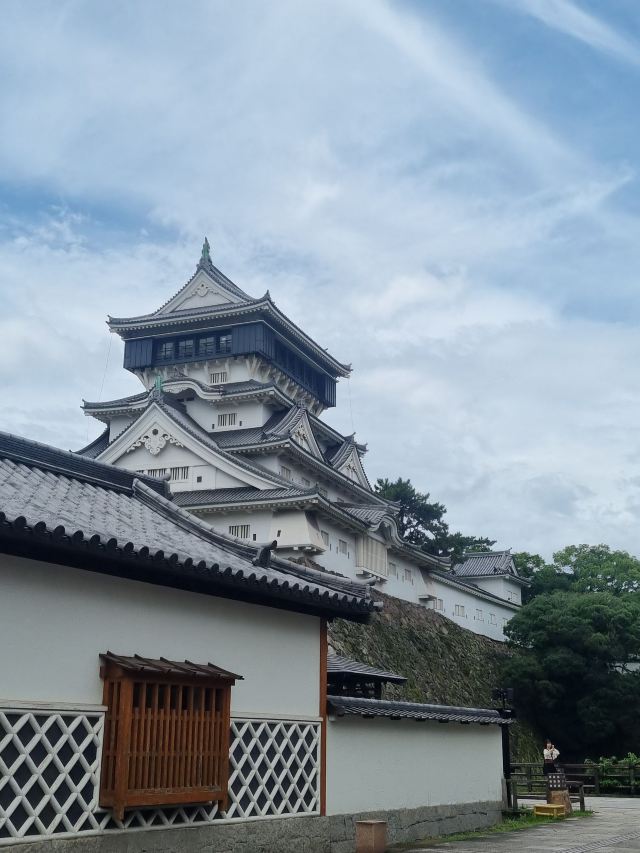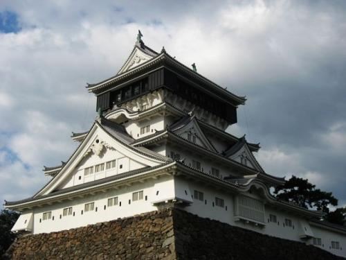 城东流过的紫川被用为天然的护城河,将一部分城下町包围在外郭之内,形成所谓“纵横”式城郭结构。现存建筑物为部分石垣及堀,天守、橹门、庭园及大名屋敷为重建。