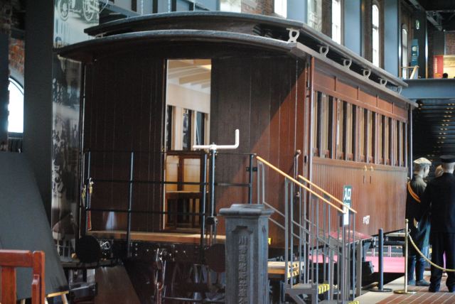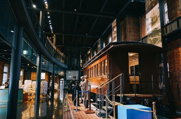本馆是一栋赤炼瓦的红砖建筑,分为上下两层。一楼有明治时期的客车车厢的实体展示,还有当时真实情境下的月台展示。展场内也设置了 HO 规格 (1/87) 的九州岛铁道的全景模型以及较受人欢迎的可以模拟驾驶 811 系近郊型电车。当然纪念品的贩售处以及休息区域也在处在场馆的一楼。二楼展览的是有关九州岛铁道的纪念品,有以前的各种车票、列车标志、车站的用品,另外还有有关现今行驶列车相关的物品。