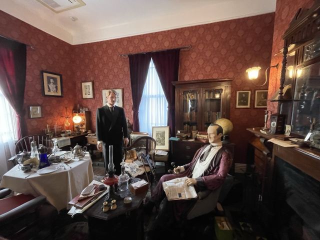 这一带充满异域风情的建筑,顺势进行了具有各国特色的内饰改建。北野异人馆有3种套票,因为时间关系,工作人员推荐了英国馆、法国馆和Ben的家3馆通票,这三家场馆相邻,逛起来比较快。每一家建筑都各有特色,内部不大,但布置的细节非常多。英国馆充满了福尔摩斯的装饰,门口有免费服装可以自行穿着,在场馆内扮演福尔摩斯进行拍照。后面的庭院里突然出现了Dobby和Alice,非常幽默。法国馆优美又有个性,充满了浪漫的花卉,体现了浓浓的法兰西风情,另一边则有着非常现代主义的艺术房间,每一个角落都充满了惊喜,记得仔细看看壁炉哦。Ben‘s house有各个标本,窗外风景仿佛穿越到了北美。
