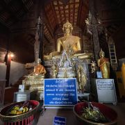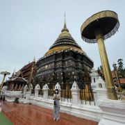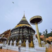 南邦大佛塔寺位于南邦城西南部18公里的郭卡县,是南邦府历史悠久,建筑完善, 同时重要的寺庙。寺庙周围曾是泰国古代哈里奔猜 (Hariphunchai) 国的一座城址,由哈里奔猜国的女王修建,但这个王朝灭亡后,这座城也荒废了,寺庙是旧城遗址中保留较完整的建筑物,在16世纪期间重建,寺庙中供奉着金佛像,每年12月均举办佛教盛会,寺庙中的景点以拱门、15世纪巨大的舍利塔、舍利塔围栏战斗痕迹及泰国古老的柚木建筑物壁画殿(Viharn Nam Taem)为重点。