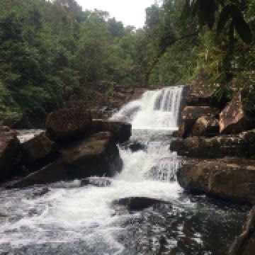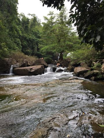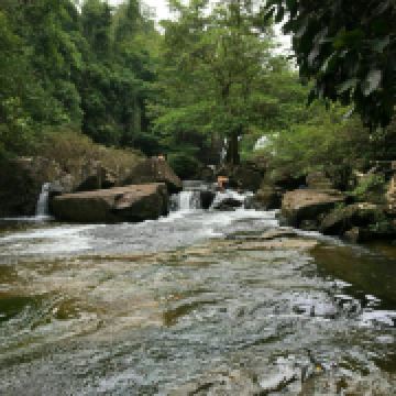 这是沽岛上的一处淡水瀑布,瀑布处于密林深处,水量并不是特别的大,但是在大海里能有这样一处天然的淡水瀑布,也算是一处奇观了。瀑布水所流经的区域是一条宽大的小溪,大家可以在这里尽情的戏水捕鱼,充满着野趣。