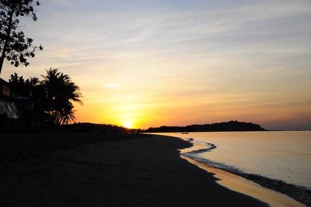 海滩上柔软的白沙滩和碧绿的大海相映,景色迷人。这里拥有非常清澈的海水,有很多透明的小鱼游来游去。只是海中有很多碎石块,或许是这里的人保护原始状态吧,如果要走远一点,建议穿上潜水鞋,不要光脚在海里走,偶尔还能踩到小螃蟹,可以抓一只上来玩一下。