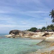 由于周围散布着众多的大石头,这里也是喜欢晒日光浴游客经常来的地方,摸上一点椰子油,静静的躺在那里和阳光亲密接触。通往信他和信亚,祖父祖母石的小路也是一条购物街,这里的椰子产品值得购买,如椰子软糖和椰子壳制品等。如果时间充裕的话一定要去看一下。
