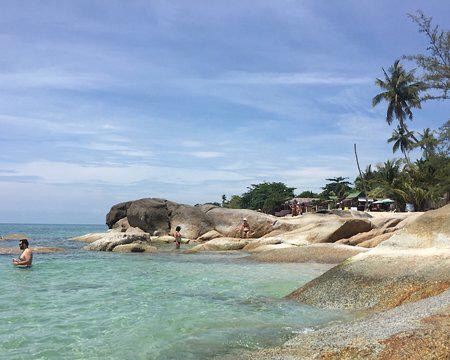 5分 超棒这里没有查汶海滩的喧嚣,显得很安静,适合惬意地游泳、潜水。海滩被众多酒店包围,无敌的海景房让你更多地享受这片宁静。海滩上还有著名的祖父祖母石和苏梅蝶园等。