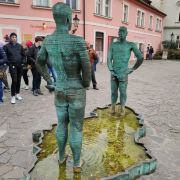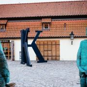 博物馆门口伫立着大大的“K”字,同时中庭处有两个站着撒尿男人的雕像,很引人注目。进入馆内后,可以一路参观卡夫卡生平的照片,日记,信件,珍贵的手稿等等,除了一般的展示外,大量运用了多媒体放映和前卫的装饰艺术进行表现。让人似乎进入了卡夫卡小说中荒诞,超现实的世界。