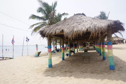 科克罗比特海滩位于加纳首都阿克拉以西约30公里,是休闲海滨圣地。沙滩呈浅金色,海水清澈平缓,沿岸棕榈树与木麻黄树形成天然遮阳区,适合铺毯野餐或观海。海滩北侧分布着多家家庭经营的海鲜餐馆,推荐尝试Grilled Tilapia(烤罗非鱼)配Kenkey(发酵玉米面团)。海滩上有租赁冲浪板和皮划艇的服务,适合喜欢水上活动的游客。南端设有付费淋浴间和储物柜,方便长时间停留。当地渔民常在清晨收网,游客可围观鱼市交易或参与讨价还价,体验市井生活。建议游客携带防晒用品,并注意海滩安全标识,以确保愉快的旅行体验。