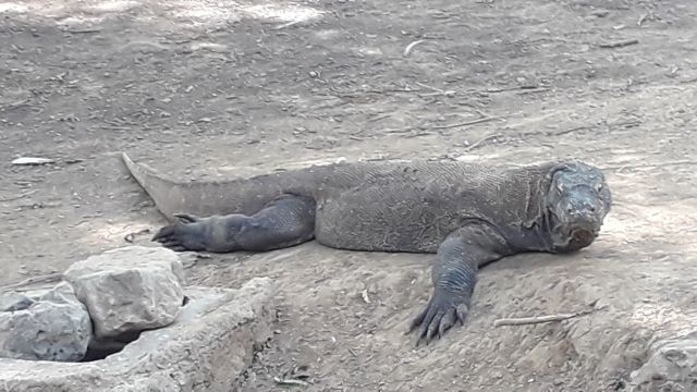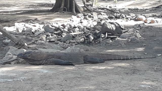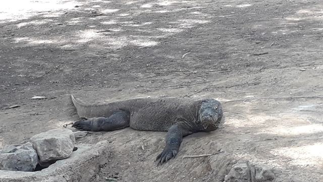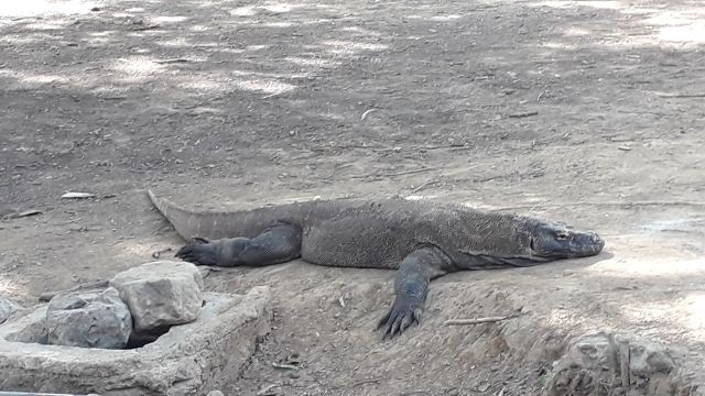 这里生活着世界上现存较大的蜥蜴:科莫多巨蜥,也称为科莫多龙。成年科莫多龙体长3-4米,重量可达100公斤,是凶猛的食肉动物,寿命40-50年。