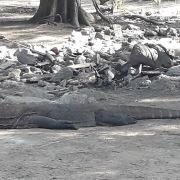 科莫多龙一次可吃掉重量相当于自身体重80[%]的食物,然后数月不进食。喂食被作为一项常规表演项目,但旅游业的发展和过分保护使得他们的生存能力严重退化。1991年时,国家公园中生活着约5700只科莫多龙,现在数量已减少到百只。