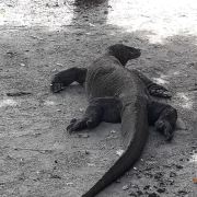 这里生活着世界上现存最大的蜥蜴:科莫多巨蜥,也称为科莫多龙。成年科莫多龙体长3-4米,重量可达100公斤,是凶猛的食肉动物,寿命40-50年。科学家们相信科莫多龙是恐龙的近亲,是生物进化研究的活化石,在世界其他地方都没有发现它们的踪迹。