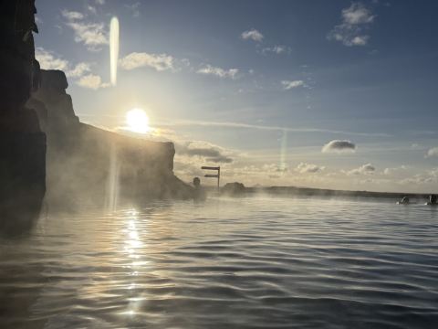 最大卖点是面向北大西洋的无边际温泉池,边泡汤边看海,非常疗愈,天气好时还能看到夕阳、彩霞甚至极光。