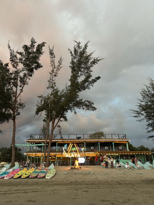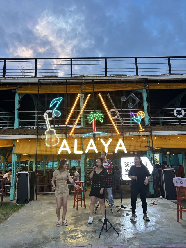 ALAYA BEACH CLUB 致⼒打造别具⼀格的海滨休闲胜地,为满⾜多元需求,俱乐部配备设施,专业⽔上活动装备,让您逐浪、扬帆;舒适休闲区,慵懒躺卧,静享海滨时光。⽇落余晖下享受精致茶点,享⽆边海景。漫天绚丽⾊彩的⽕烧云与平铺天际的⾦红海⽔相互映衬,让⼈仿佛置身于梦幻世界。当夜幕降临,俱乐部内灯⽕辉煌。⾳响设备奏响动感旋律,舞池中的⼈们尽情摇摆,释放激情与活⼒。是这⾥情侣的约会佳地、家庭欢聚的港湾,朋友的畅玩之所。也可举办浪漫海滨婚礼、活⼒泳池派对,共享美好时光。