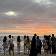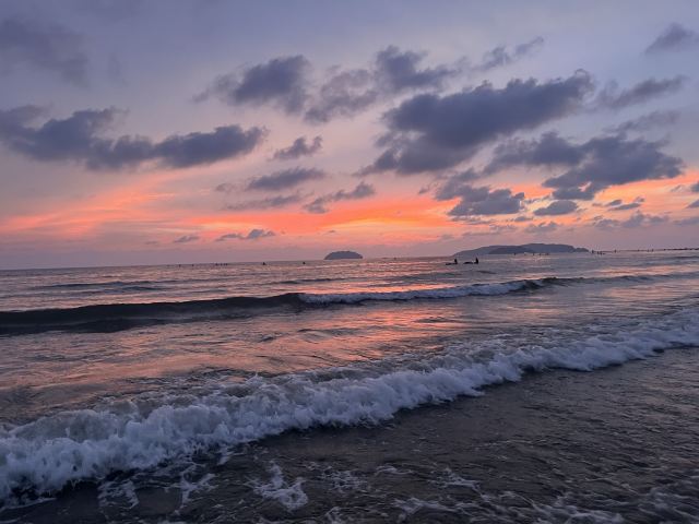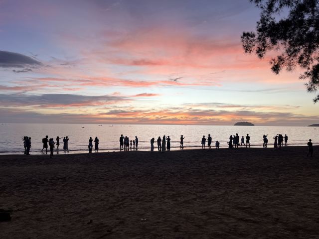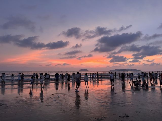 白天这里的人相对不是很多,当然也不乏一些老外在这里进行各种水上运动,如摩托艇、滑水、冲浪等。但到了傍晚时分,在沙滩边等待日落的游客便会高朋满座,也算得上是一道美丽的风景线。通常而言,前往海滩等待日落的时间为下午4点左右。