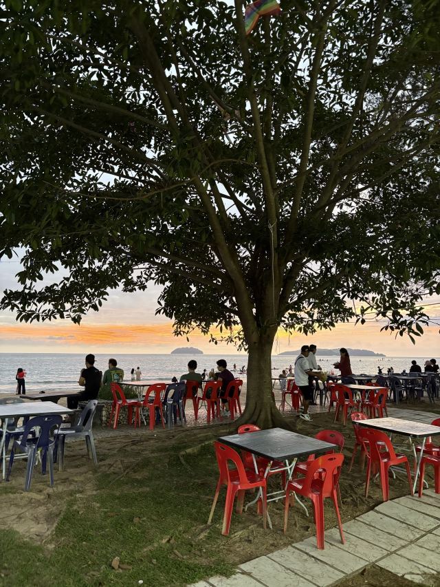 看完日落,你可以去沙滩边的海滨走廊坐一坐,这里晚上会经常举行一些烧烤晚会,伴有乐队。你可以选择喝一些椰子和甘蔗汁,都是现开现榨的,佐伴烤鸡肉或牛肉沙爹串更是绝配。吹吹海风,一边品尝美食一边欣赏夕阳西下的精致。