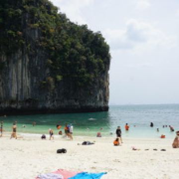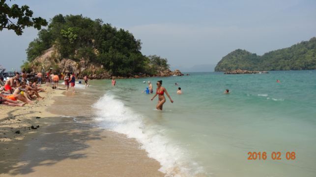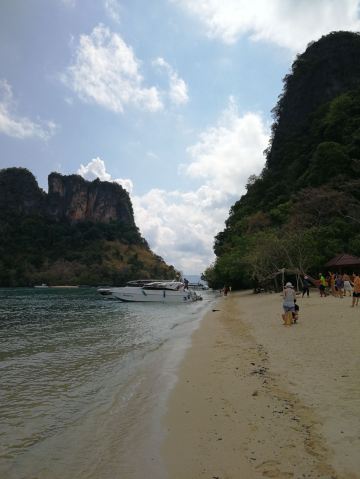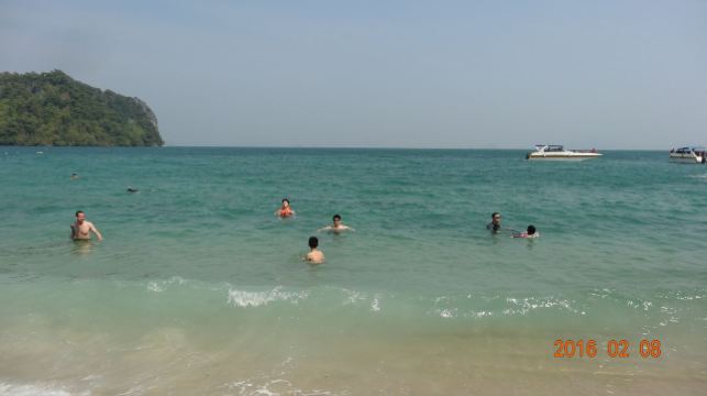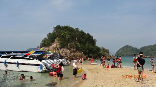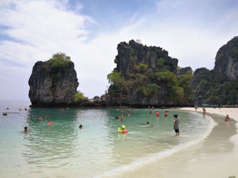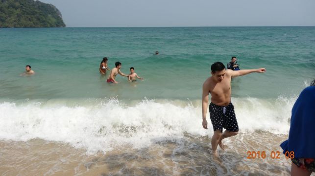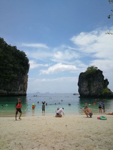 4分 满意甲米的离岛很多,住在RitzCarlton,当天就预订了第二天一早的宏岛之行,去免费,回来要支付300泰铢的安全费,大概也就60+人民币,还行。坐的是当地的长尾船,摆渡过去25-30分钟左右。当然是在餐厅吃过了早餐过去的,时间点掐的正好,不过就是没有懒觉可以睡了,基本6点半要在餐厅出现,话说早早起的鸟儿有虫吃。在酒店工作人员的讲解下穿上救生服就上船了,一艘船大概坐8个人左右,我们那次是4人组加上另外一对日本夫妇+2个小孩,还算宽敞,回来也是同一艘船,有送冰水,不过我自带了气泡水和零食。 去的人可以去浮潜的,因为我也不是特别喜欢水,所以就是去望一眼而已顺便测试下我华为30p的N倍变焦功能^_^ 防晒工作要提前做。有山有海,到了会有一个漂浮的码头可以上岸,周边有划分浮标,超出范围就危险了,反正也不下水,跟我没啥太大关系。沿着细沙滩走走,满脚的沙子去浅滩边洗洗脚,越洗沙子越多,好吧。岛上有卫生间,冲水也是海水,洗手也是,囧。 会每人发一个黄色的毯子,铺在沙滩下可以坐可以躺,看看风景,我有洁癖,看到沙子里的小蚂蚁,还是算了。不过周边的人看他们玩水很high,比如一对腻歪的印度or斯里兰卡人的couple抱在一起游泳,出水的时候有种海飞丝洗发水的既视感;还有少许身材不错的欧美妞,不过都飘的很远。其他有大爷大妈,忽略。还有个MSL少妇,抱着孩子全身武装在浅滩边给小孩子沐浴海水,很有画面感。反正各种看看,发现大自然不一样的美。