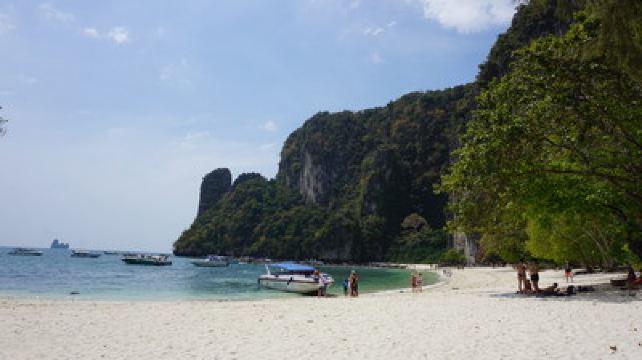 4分 满意我们的船夫把我们带到洪岛后面的一个泻湖。 风景最美。 此后,他将我们放在洪岛本身一个小时左右,以便在沙滩上放松(我们在那里的时候人数最少),然后再前往其他岛屿。 在甲米必须做跳岛游。 至少要旅行半天。 如果可能的话,请使用私人船只进行; 以您自己的节奏和喜好体验它有很大的不同。我们乘船游览了宏岛里的三座小岛和宏岛泻湖。老定岛是我们的最爱。这是一个有海滩和浮潜区的小海湾。巴基斯坦岛有一个更大的海滩,但那里有更多的旅游船停靠。宏岛主岛上有一个美丽的海滩,有足够的空间容纳许多浮潜者。宏岛的特色是有一个很长的浮桥码头,由漂浮的塑料件制成,很难在上面行走。我们驱车绕着宏岛湖行驶并拍照。这座岛屿非常漂亮,如果你游览这片区域,很值得来这里看看。