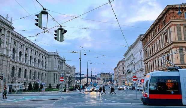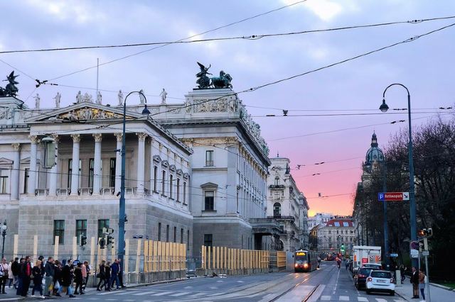 维也纳环城大道是维也纳城中有名的观光道,大道两侧绿树成荫,两侧云集了各种风格的建筑,市政厅和国家歌剧院都在于此。