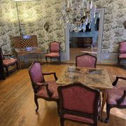 沿着雕饰精美的楼梯拾级而上,便可来到二楼,这里主要设有会客厅和音乐室。会客厅十分宽敞,用典雅的红色天鹅绒装饰,歌德十分推崇中国文化,会客厅的壁纸充满了浓郁的中国风情,因此会客厅也被称为“北平”厅。当年歌德就是在这里与德国以及欧洲各国慕名而来作家、诗人以及戏剧家等谈笑风生。音乐厅也是爱好音乐的歌德一家时常流连的地方,这里存放有一架古老的击弦古钢琴,周围的墙上装饰有歌德家族成员的画像。