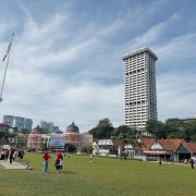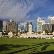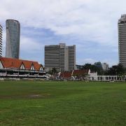 广场的西面是皇家雪兰羲俱乐部,在炎热的吉隆坡,满眼绿色会多少能消解一些体内的燥热,看到的时候就有这样的感受。这里原名为雪兰莪俱乐部草场,曾经是球场,像是板球、曲棍球、网球及橄榄球等比赛都在此举行。到目前为止,偶尔这里还会举行板球比赛。
