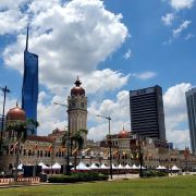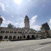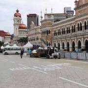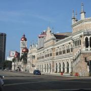 广场的东面是苏丹阿都沙末大厦(又名苏丹亚都沙高等法院),混合了维多利亚、摩尔等多种风格。是吉隆坡的标志性建筑。大楼的中央有一个40米高的造型类似英国的“大本钟”,被称为马来西亚大本钟,但在钟楼的顶部加上一个金色的半球形圆顶。两侧,各有一个塔楼,顶部也都有金色圆顶。每逢重大庆典,五光十色的彩灯照亮了整个大楼,令人感到这幢楼犹如阿拉伯神话世界中的城堡,雄伟而又有几分神秘,来自各地的游客都在这座颇具特色的大楼前拍照留念。