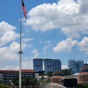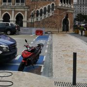 广场没有任何守卫,附近并没有什么特别震撼人心的点,旗杆的下面有历任首相的照片,前面还有一个圆形的喷水池,不过年代已久远。整个广场不大,欣赏旗杆的同时,你也不妨找个荫凉的地方坐下来,安安静静地欣赏一下周围的建筑物。