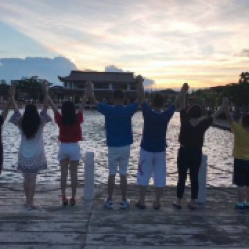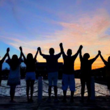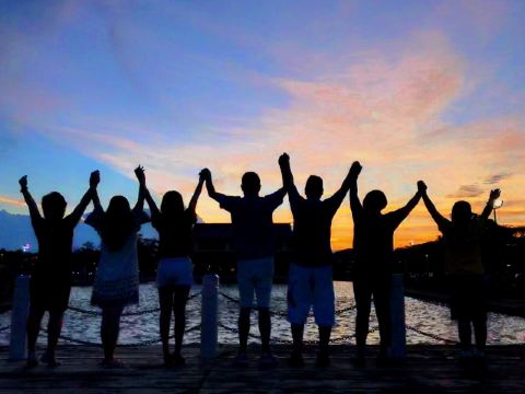 在河边看着美丽的夕阳,慢慢享受这里的慢生活。