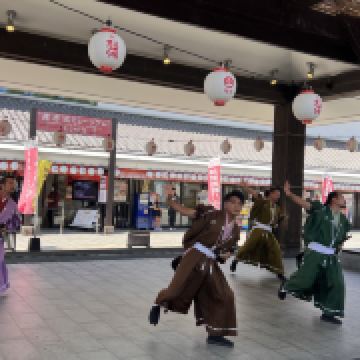 〝涌涌座〞主要提供历史文化体验服务,一层为古今历史展示厅,透过实景、数码重现方式使游客回到熊本城建立者加藤清正的时代。二层为表演厅,有历史剧定期公演。