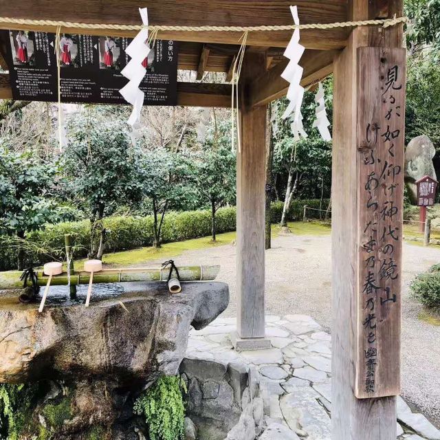 游走于水前寺成趣园内可望见绿意盎然的树木花卉,感受自在悠间的轻松心情,美轮美奂的人工山水将水前寺衬托得非常整齐美丽,庭园内的水池中涌出的是来自于阿苏山脉的伏流水。另外还有古色古香的古今传授间、小桥、池塘、高大的鸟居门等,让水前寺成为景色优美富趣味性花园,宛如汇聚了趣味性而成的庭园;于出水神社内还有甘甜清澈的泉水称为“长寿之水”,也是水前寺内的一景,由于环境优雅景色宜人,吸引许多人前来观赏,因此水前寺成趣园为日本有名的美丽景点之一。