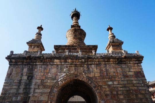2、金刚塔是我国现存十多座石质金刚塔中历史最悠久的,始建于明天顺二年,即1457年重修妙湛寺时,由云南总兵、右都督沐璘主持修建,笃信佛教的监军太监罗珪出资,修塔工程十分严格使得塔仍完好保存至今。但沐璘在金刚塔即将竣工时病故年仅28岁,其墓地在旁边的法定寺后院,罗珪也在塔建成后两年去世,他有别于明代其他监军宦官,当地口碑很好。塔身下部可穿行而过,俗称“穿心塔”,寓意与佛联通,2002年翻修时发现塔座下均为螺蛳壳和淤泥,竟能让塔身600年不倒堪称建筑奇迹。