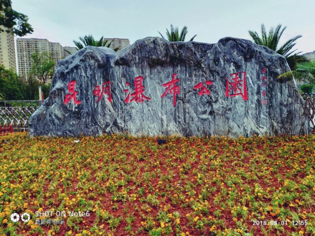 昆明瀑布公园位于牛栏江—滇池补水盘龙江入口段。公园的瀑布景观区充分利用牛栏江引水入滇工程而形成的人工瀑布及湖泊,其利用约12.5米的地势高差,建设成宽幅约400米的人工瀑布。该人工瀑布属国内幅宽较大、流量较大、规模较大的人工瀑布。