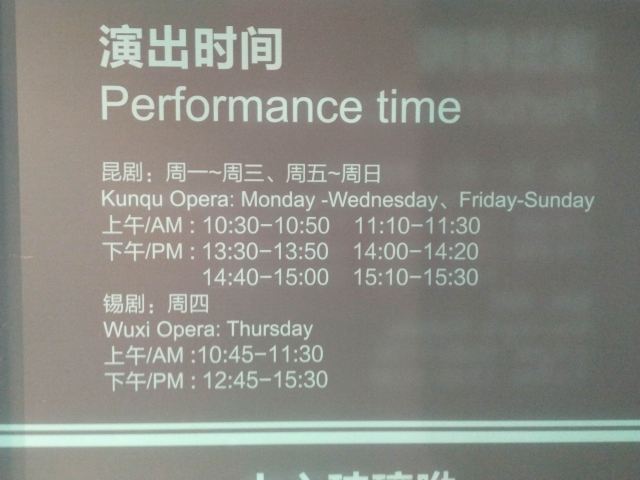 5分 超棒周庄的门票虽然要100元,在检票口旁边可办理三天有效的手续,这一点很好。古戏台每天上午10:30-11:30,下午1:30-3:30有昆曲演出,上午两出折子戏,下午两出折子戏,江苏省昆剧院演出,对于昆曲爱好者来说,单是看戏就值回票价。