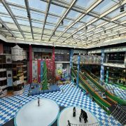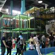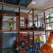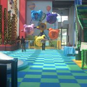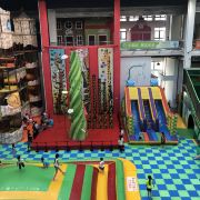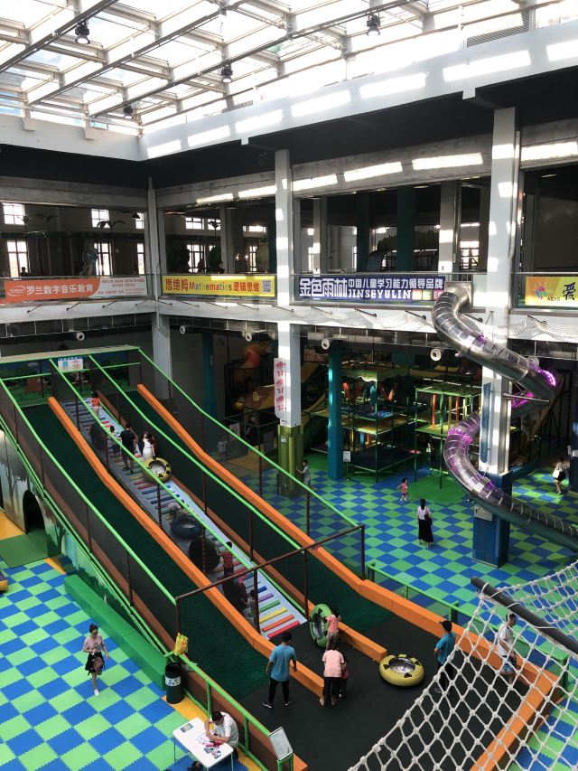 5分 超棒超大的儿童乐园 一楼三楼是游玩区 一楼旁边和二楼是吃饭区域 一楼有一块适合偏大的孩子 三楼适合三岁以下的 除了室内还有室外区域 有旋转木马 小火车 也是免费的